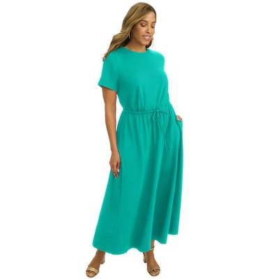 June + Vie by Roaman's Puff-Sleeve Babydoll Maxi Dress - 10/12, Gray Blue