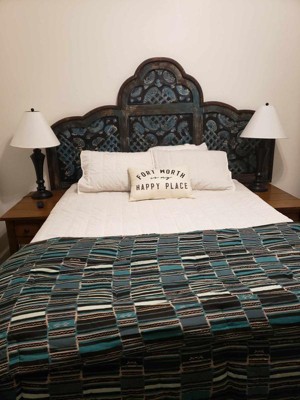 Fluffy bedding with cute tassels and gorgeous color! It coordinates beautifully with my Mexican headboard. It would look great with so many styles.