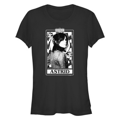 • Strut your stuff with this stylish new juniors' oversized t-shirt that is perfect for every occasion! Featuring Astrid Deetz depicted in a black-and-white tarot card style, along with the iconic movie logo above.