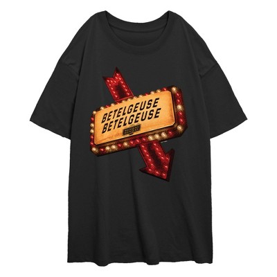 • Strut your stuff with this stylish new juniors' t-shirt that is perfect for every occasion! Featuring the iconic marquee sign from the movie, with "Betelgeuse" written 2 times and an arrow pointing to the right and down.