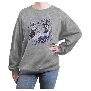 • Elevate your Valentine's Day look with this adorable juniors' oversized sweatshirt that will surely steal hearts! Featuring Ursula, Maleficent, and Evil Queen inside a heart, along with the phrase: "Breaking Hearts" written across the front