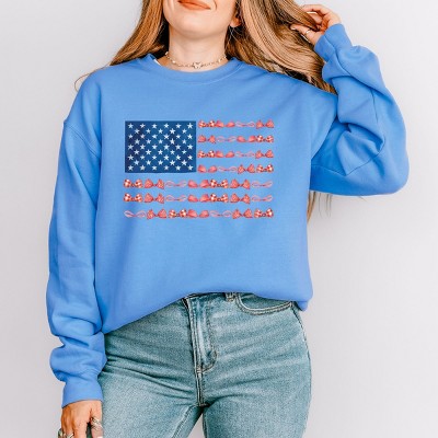 Junior's Lost Gods Distressed Black and White American Flag Cowl Neck Sweatshirt