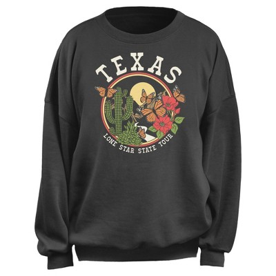 • Strut your stuff with this stylish new juniors' oversized sweatshirt that is perfect for every occasion! Featuring a sunset on a tropical beach with palm trees and flowers in a distressed style across the front.