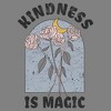 • Strut your stuff with this stylish new juniors' cowl neck sweatshirt featuring an artistic graphic of some flowers standing on their own in front of the moon and a starry sky with the words: "Kindness Is Magic" around it.