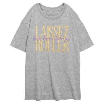 • Strut your stuff with this stylish new everyday juniors' tee that is perfect for every occasion! Featuring the expression "Laissez Les Bons Temps Rouler" in cute golden an purple text across the front.