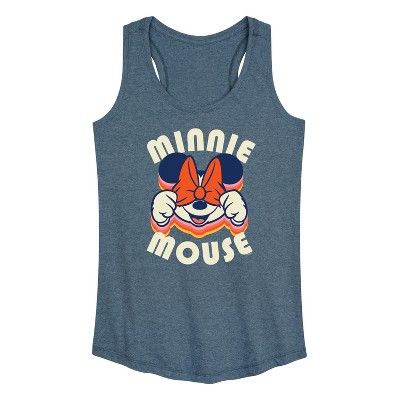 - Strut your stuff with this stylish new juniors' festival muscle tank top that is perfect for every occasion! Featuring Minnie sitting in different positions on top of her name.