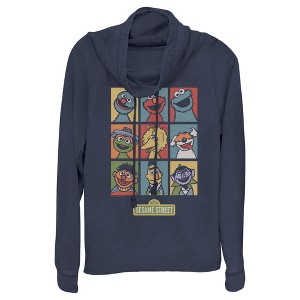 Junior's Sesame Street 9 Panel Puppet Grid Cowl Neck Sweatshirt - 1 of 4