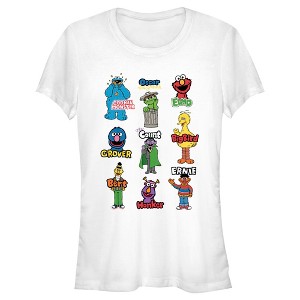 • Strut your stuff with this stylish new juniors' t-shirt that is perfect for every occasion! Featuring Bert, Big Bird, Cookie Monster, Count von Count, Elmo, Ernie, Grover, Honker, and Oscar the Grouch with their names across the front.