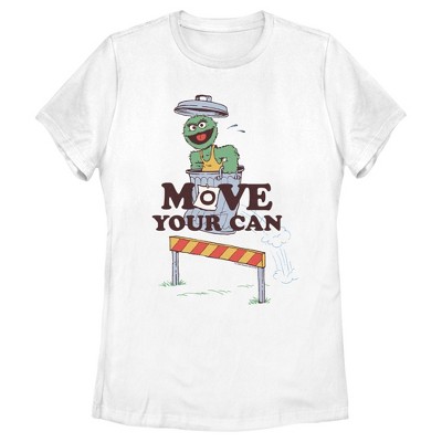 • Strut your stuff with this stylish new juniors' t-shirt that is perfect for every occasion! Featuring Oscar the Grouch in his trash can with a sign that says: "Scram!" and his friend Slimey the Worm.