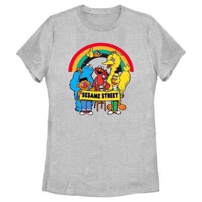• Strut your stuff with this stylish new juniors' t-shirt that is perfect for every occasion! Featuring Bert, Big Bird, Cookie Monster, Count von Count, Elmo, Ernie, and Oscar the Grouch with the text: "Sunny Vibes," in a groovy font and a rainbow in the background.