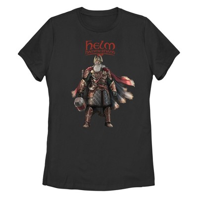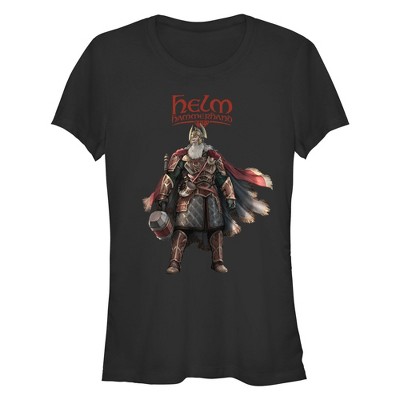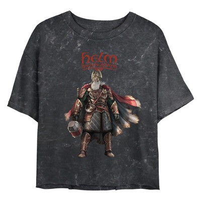 - Strut your stuff with this stylish new juniors' cropped t-shirt that is perfect for every occasion! Featuring Helm Hammerhand in his iconic red armor, framed by his name written in bold letters across the front.