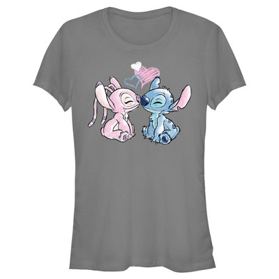 • Strut your stuff with this stylish new juniors' t-shirt that is perfect for every occasion! Featuring an adorable graphic of Mickey and Minnie Mouse laughing and hugging each other.
