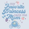 • Moms can channel their inner royalty with this stylish new juniors' cropped t-shirt! Featuring the sweet phrase: "My Favorite Princess Calls Me Mom," with Fairy Godmother, a bird, stars, an apple, and the Pumpkin Coach carriage printed across the front.