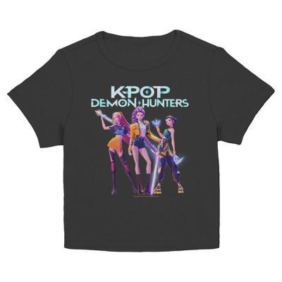 • Serve looks, slay demons, and rep your fandom loud and proud with this unique juniors' baby tee from Kpop Demon Hunters.