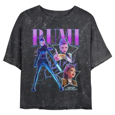 Serve looks, slay demons, and rep your fandom loud and proud with this unique juniors' cropped raw-hem tee from Kpop Demon Hunters.