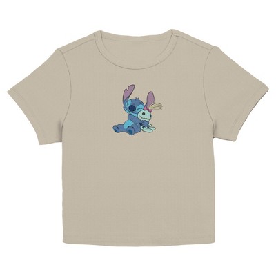 • Embrace the true Y2K fashion with this juniors' graphic baby t-shirt design from Lilo & Stitch.