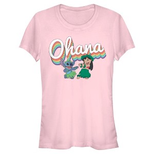 Juniors Womens Lilo & Stitch Rainbow Ohana Hula Dance T Shirt - 1 of 4