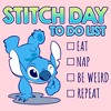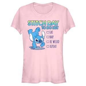Ohana means family, and family means no tee gets left behind! Find the perfect style for your family with this new Juniors' To Do List T-shirt! This adorable design features a checklist reading "Eat, Nap, Be Weird, Repeat" next to a graphic of Stitch doing a handstand and winking. Celebrate a certain alien, otherwise known as Experiment 626, in style with new hilarious apparel for the whole family from the movie!