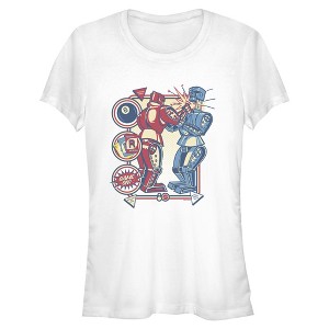 Juniors Womens Mattel Blue Bomber and Red Rocker Robots Game On T Shirt - 1 of 2
