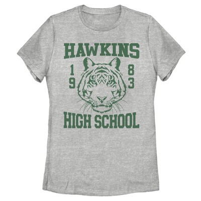 Juniors Womens Stranger Things Hawkins High Tiger Mascot T Shirt