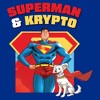 Show off your super side with this officially licensed Juniors' DC Comics Superman Krypto Duo Graphic T-Shirt! Featuring charming cartoon versions of Superman and his trusty sidekick Krypto standing tall, along with the iconic "S" symbol in the background and their names above them. Perfect for true fans and superhero lovers alike, it's a must-have for anyone ready to wear their fandom proudly. Don't just follow the pack, lead it with this heroic, eye-catching shirt that's sure to turn heads and steal hearts!