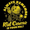 • Step into a futuristic world with this stylish new juniors' t-shirt where style meets the dystopian future! Featuring Kid Cosmo with the phrase "Always Remember Kid Cosmo Is Your Pal!" printed across the front.