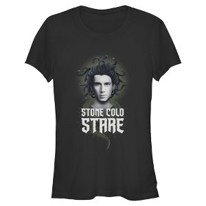Rock your style literally with this officially licensed Juniors' Netflix Wednesday Ajax Stone Cold Stare Graphic T-Shirt! This awesome design features Ajax Petropolus in a bold black and white illustration, along with his "Stone Cold Stare," matched only by the stylish snakes coiled on his head and wrapped around his neck. Whether you're slithering through Nevermore or just petrifying your errands list, this tee brings serious fang to your fashion. Warning: prolonged eye contact may cause sudden admiration—or statue-like stillness.