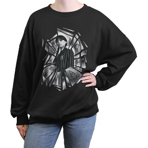 Juniors Womens Wednesday Broken Glass Portrait Sweatshirt - 1 of 3