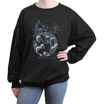 • Own the darkness in style with this unique juniors' graphic oversized pullover design from Wednesday.