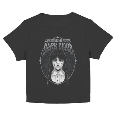• Own the darkness in style with this unique juniors' graphic baby t-shirt design from Wednesday.