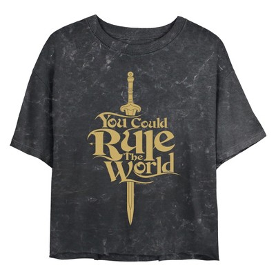 Own the darkness in style with this unique juniors' graphic cropped raw hem tee design from Wednesday.