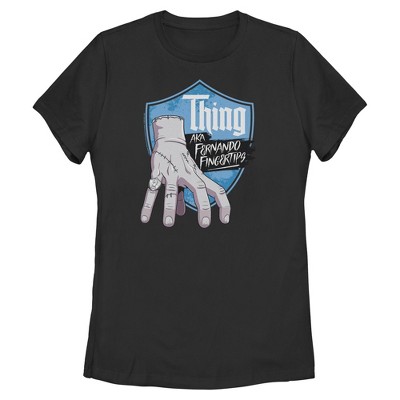 Juniors Womens Wednesday Thing Fernando Fingertips T Shirt