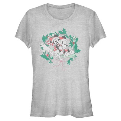 - Wear your Christmas spirit all season long with this juniors' t-shirt! Featuring the lovable Winnie the Pooh in a Santa hat, striking a cute pose inside a festive wreath, along with the text "Merry and Bright" below him.