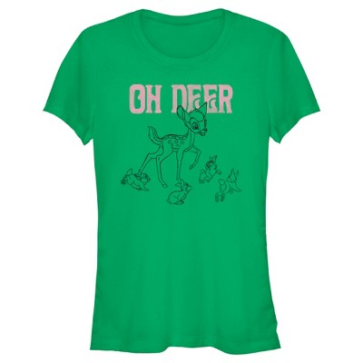 • Strut your stuff with this stylish new juniors' t-shirt that is perfect for heading out into the forest! Featuring a retro poster for the Disney movieBambiwith Thumper the Rabbit, Flower the Skunk, a Mom quail with her babies, and Bambi the Deer across the front.