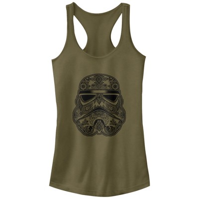 Juniors Womens CHIN UP Henna Lotus Flower Racerback Tank Top - Military Green - Medium