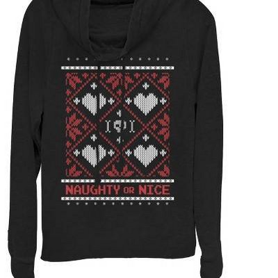 Juniors Womens CHIN UP Naughty or Nice Knit Print Cowl Neck Sweatshirt - 1 of 3
