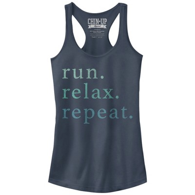 Juniors Womens CHIN UP Running Late is My Cardio Racerback Tank Top - Indigo - Large