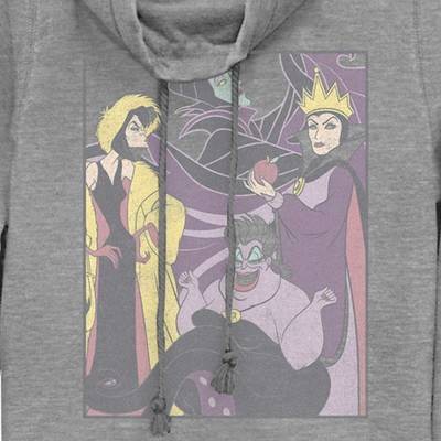 • Strut your stuff with this stylish new every day juniors' cowl neck sweatshirt that is perfect for every occasion! Featuring a distressed poster of your favorite characters like Ursula, Evil Queen, Cruella, and Maleficent across the front.