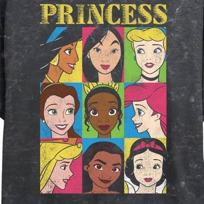 • Strut your stuff with this stylish new every day juniors' crop t-shirt that is perfect for every occasion! Featuring Jasmine, Mulan, Cinderella, Belle, Tiana, Ariel, Aurora, Moana, and Snow White are all portrayed in a box with the word "Princess" at the top.