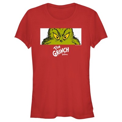 • Strut your stuff with this stylish new juniors' t-shirt that is perfect for every occasion! Featuring a portrait of Grinch smiling across the front with his name above him in an airbrushed style.
