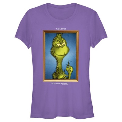 • Strut your stuff with this stylish new juniors' t-shirt that is perfect for every occasion! Featuring cropped panel of Grinch's yellow eyes across the front with the book title logo below.