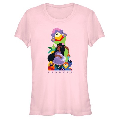 Flowers grow wherever the Disney Encanto Isabela Portrait Juniors' T-Shirt goes! Enjoy the bright blossoms decorating Isabela on this colorful Encanto tee designed by the artist Ledania.