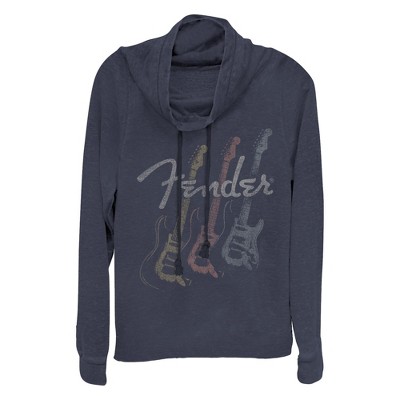 Juniors Womens Fender Guitar Chart Cowl Neck Sweatshirt