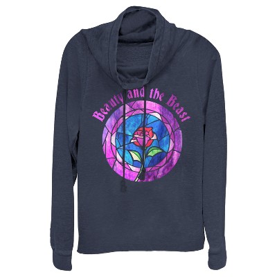 Juniors Womens Frozen 2 Sister Stained Glass Cowl Neck Sweatshirt - Navy Blue - Small