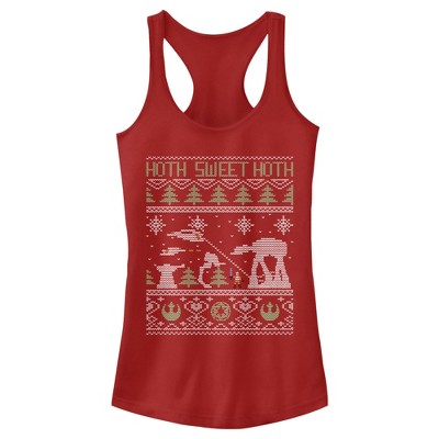 Juniors Womens Frozen Ugly ChristmasOlaf Sven Racerback Tank Top - Scarlet - X Small