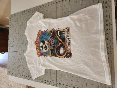 • Strut your stuff with this stylish new Juniors' Fitted T-Shirt that is perfect for Halloween! A vintage style poster shows off the Sanderson sisters flying across a full moon in a fun colorful print.