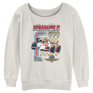 - You are sure to feel like a racing legend with this stylish new juniors' sweatshirt! Featuring two racing cars at full throttle, red and blue stripes, a fun checkered pattern, the words "Est. 1911 Indy 500 the Greatest Spectacle in Racing," and the legendary Indy 500 logo printed across the front.