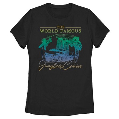 A cool ombre color sketch of the La Quila riverboat with the title "The World Famous Jungle Cruise" appears across the front of this retro-inspired Juniors' Ideal Racerback Tank Top from the upcoming Disney Film Jungle Cruise.
