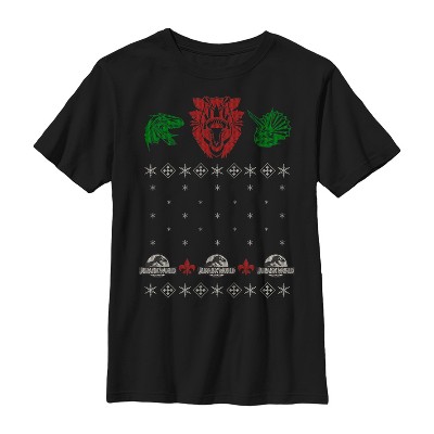 The best person to help wrap Christmas presents is a raptor! Get into the Christmas spirit with a "wraptor" and the Jurassic World Christmas Sweater Raptor T-Shirt! The Jurassic World logo is featured next to a Triceratops, a Velociraptor, and more on this holiday sweater-style print across the front of this festive Jurassic World tee.