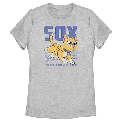 To infinity and beyond! Take your style to out-of-this-world levels with new officially licensed apparel for the whole family from the highly anticipated new movie Lightyear, featuring the origin story of Toy Story's lovable hero Buzz Lightyear! This juniors' tee features a cute distressed graphic of Sox with "Personal Companion Robot" printed below.
